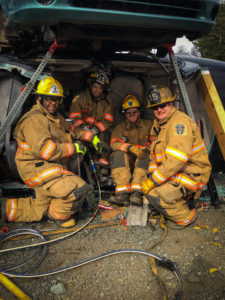 The course culminated in a “colossal collision” scenario where small groups of 8-10 students tackled an unusually challenging scene. BVFD members train regularly to ensure they’re proficient in the variety of accidents we face. Whether that’s stabilizing a vehicle on its side, popping a door, or rolling a dash, BVFD members take pride in working quickly and professionally. So imagine their surprise when they found two vehicles on their sides with a third resting on top and were told to take all the doors, remove the room and roll the dash!