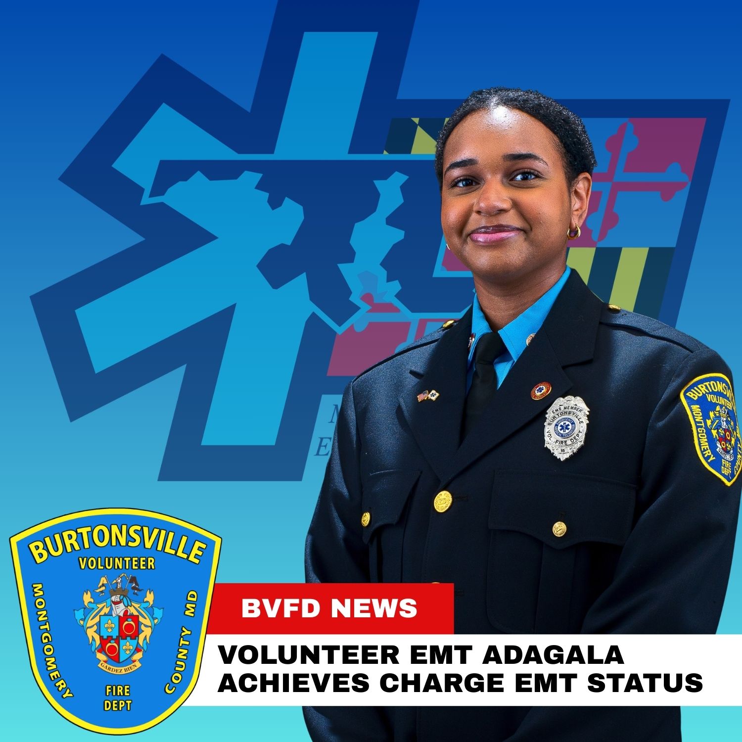The BVFD proudly announces the advancement of EMT Naima Adagala who earned Officer in Charge (OIC) status on the BVFD Ambulance in February of 2026.