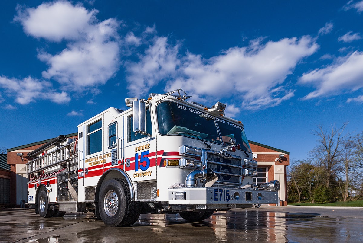 Engine 715B is a 2008 Pierce Arrow XT engine featuring 1250 GPM Waterous dual stage pump and 550 gallon booster tank, along with Class A and Class B foam tanks. This unit is also equipped with a compressed air foam system, (CAFS). The smaller booster tank allows better acceleration and less wear and tear on the vehicle.